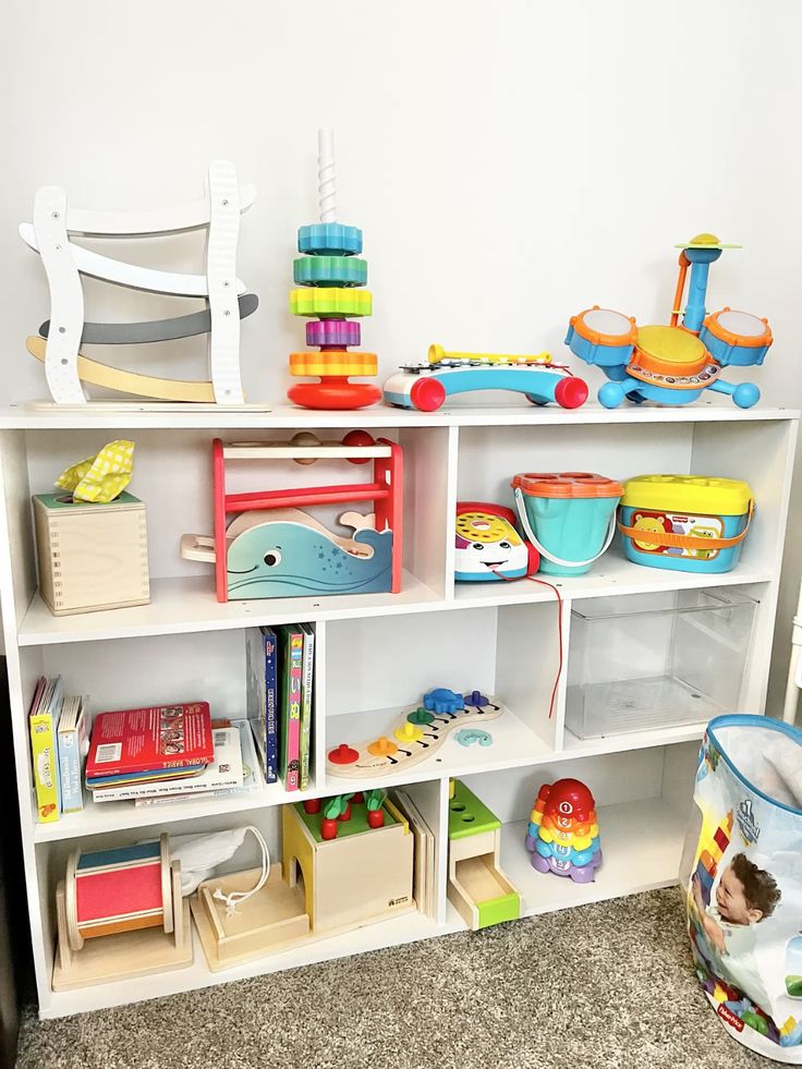 If you do have more space to dedicate to an open playroom, I love this very affordable shelf from Amazon for keeping toys visibly on display for open/Montessori-type toy organization.
