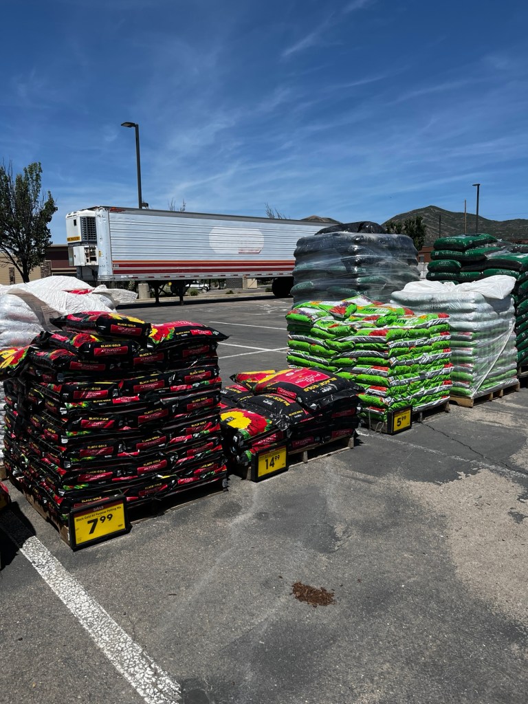 Then, we grabbed some flowers from the clearance section of our Smith’s and started the flower seeds we found at Dollar Tree.