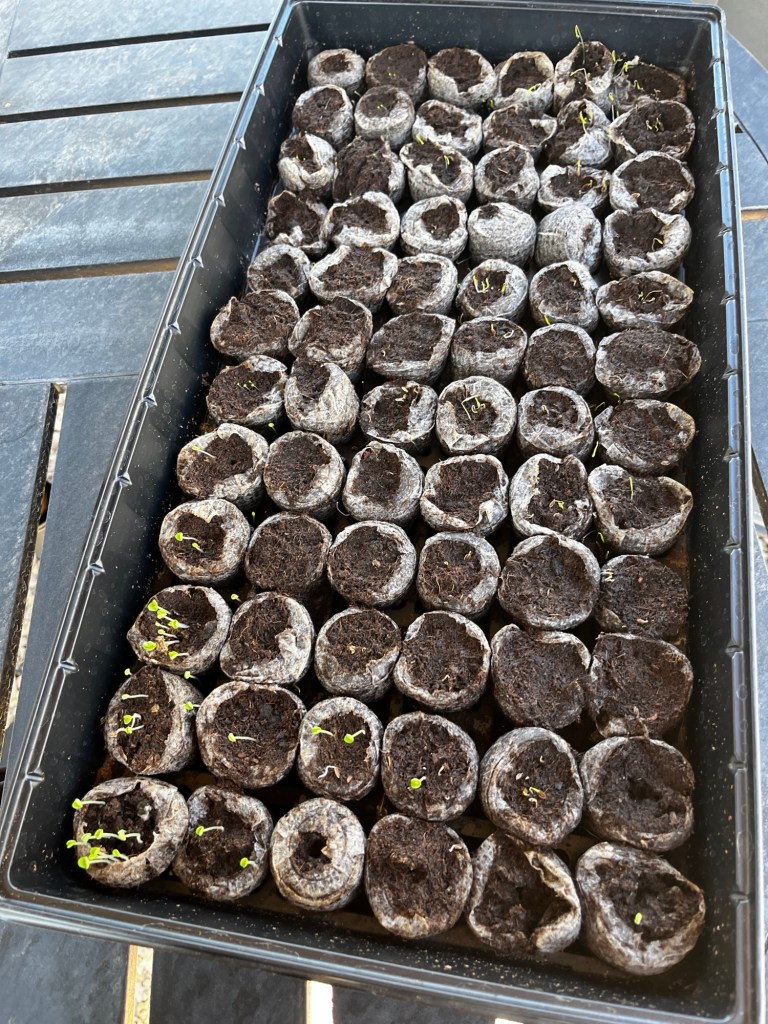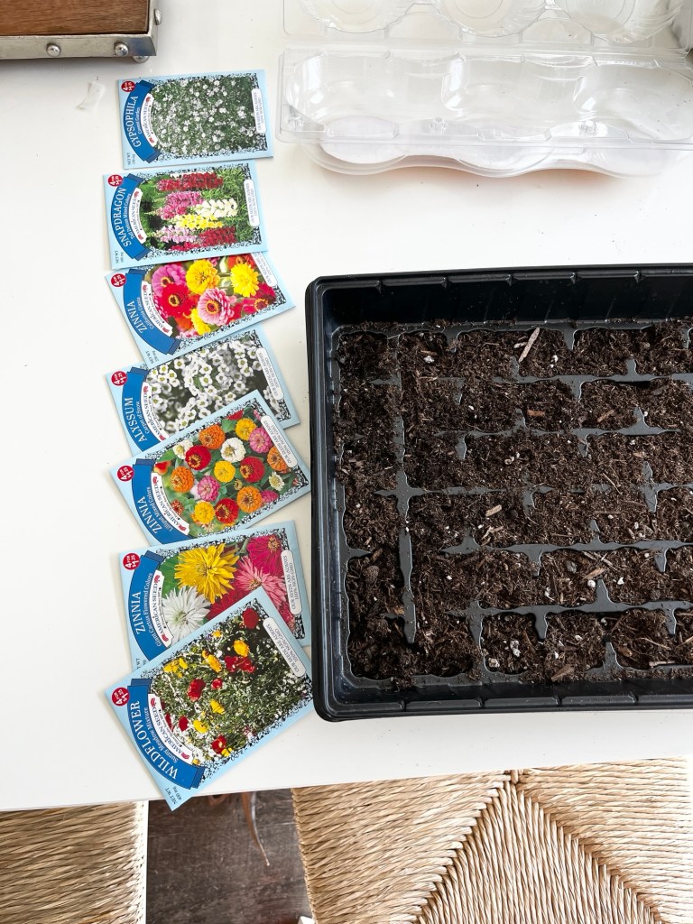 We just used a Jiffy seed starter tray kit but you could even just use an egg shell carton to keep it even more economical—remember to get your little ones involved! It’s like a living science experiment for them, and so fun for them to see them watch the sprouts grow!