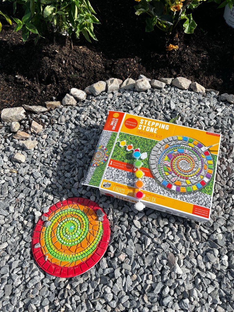 We came across these stepping stone and birdhouse paint kits and thought they would be a fun addition to the fairy garden.