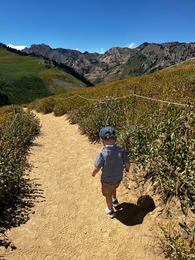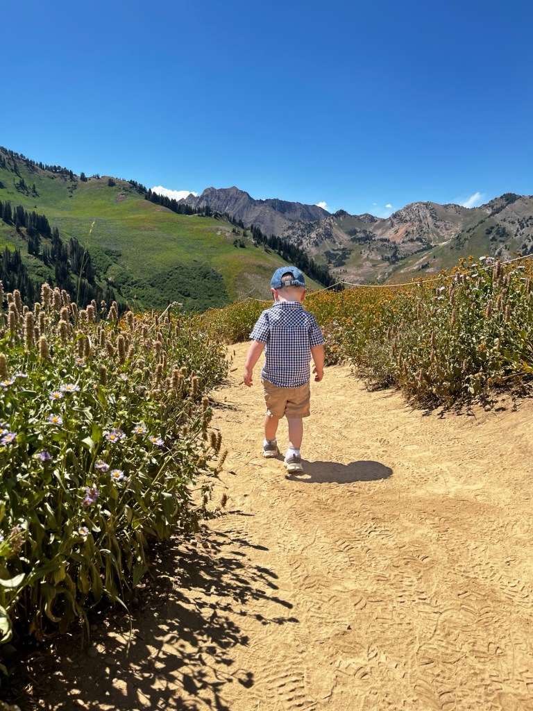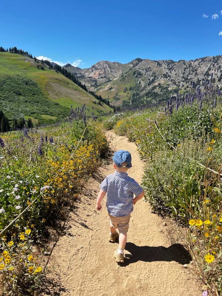 So first thing to know about the wildflower hike at Albion Basin — dogs aren’t actually allowed 😦 I was sad we had to leave honey home for this one. But it was an amazingly beautiful hike with a fairly easy dirt path you can do with little ones.
