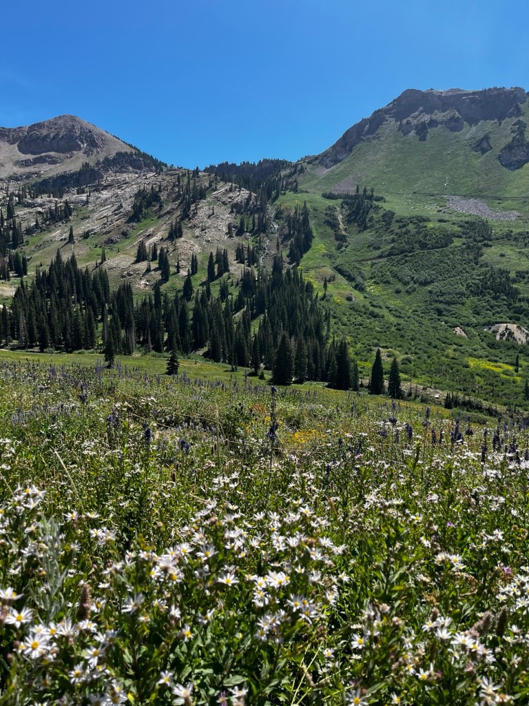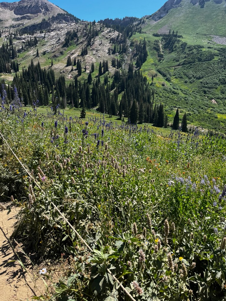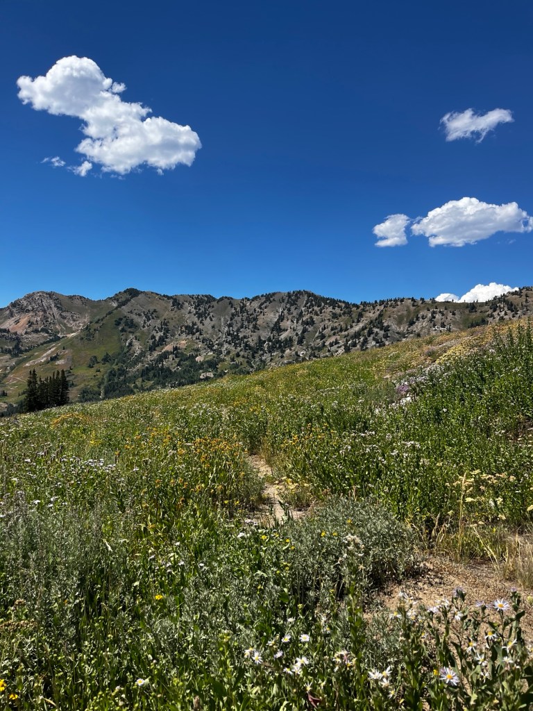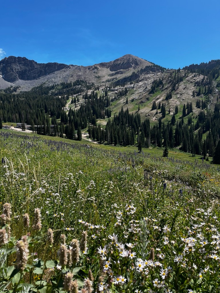 As you can see, the views of mountains and flowers are absolutely spectacular. It’s obviously at a high elevation, and July is usually the hottest month in Utah, so take lots of water. We saw signs for a little store but didn’t see one, and the nearby building seemed to be under construction when we went.