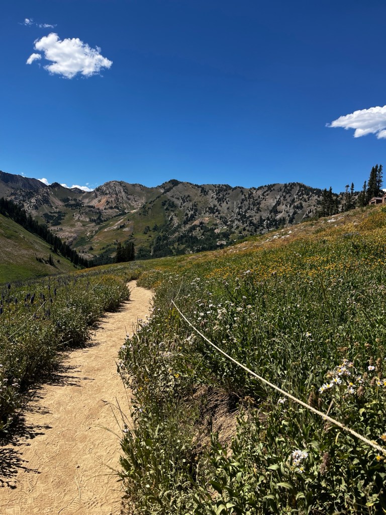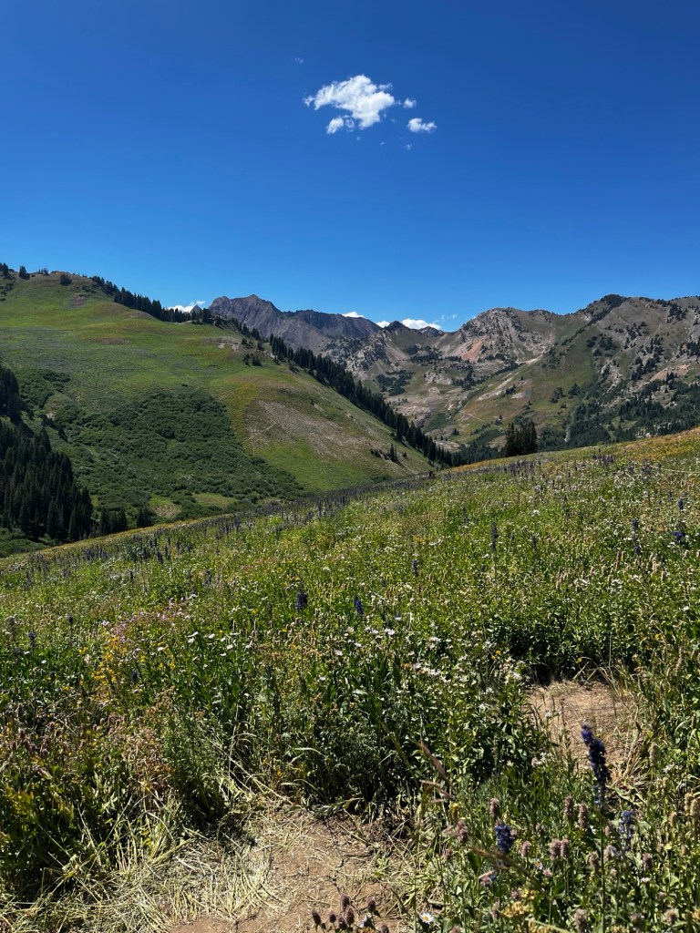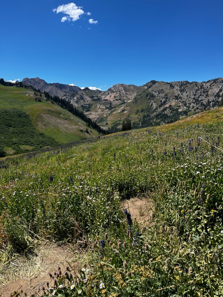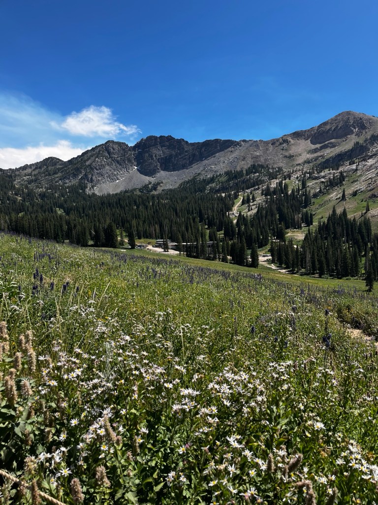 As you can see, the views of mountains and flowers are absolutely spectacular. It’s obviously at a high elevation, and July is usually the hottest month in Utah, so take lots of water. We saw signs for a little store but didn’t see one, and the nearby building seemed to be under construction when we went.